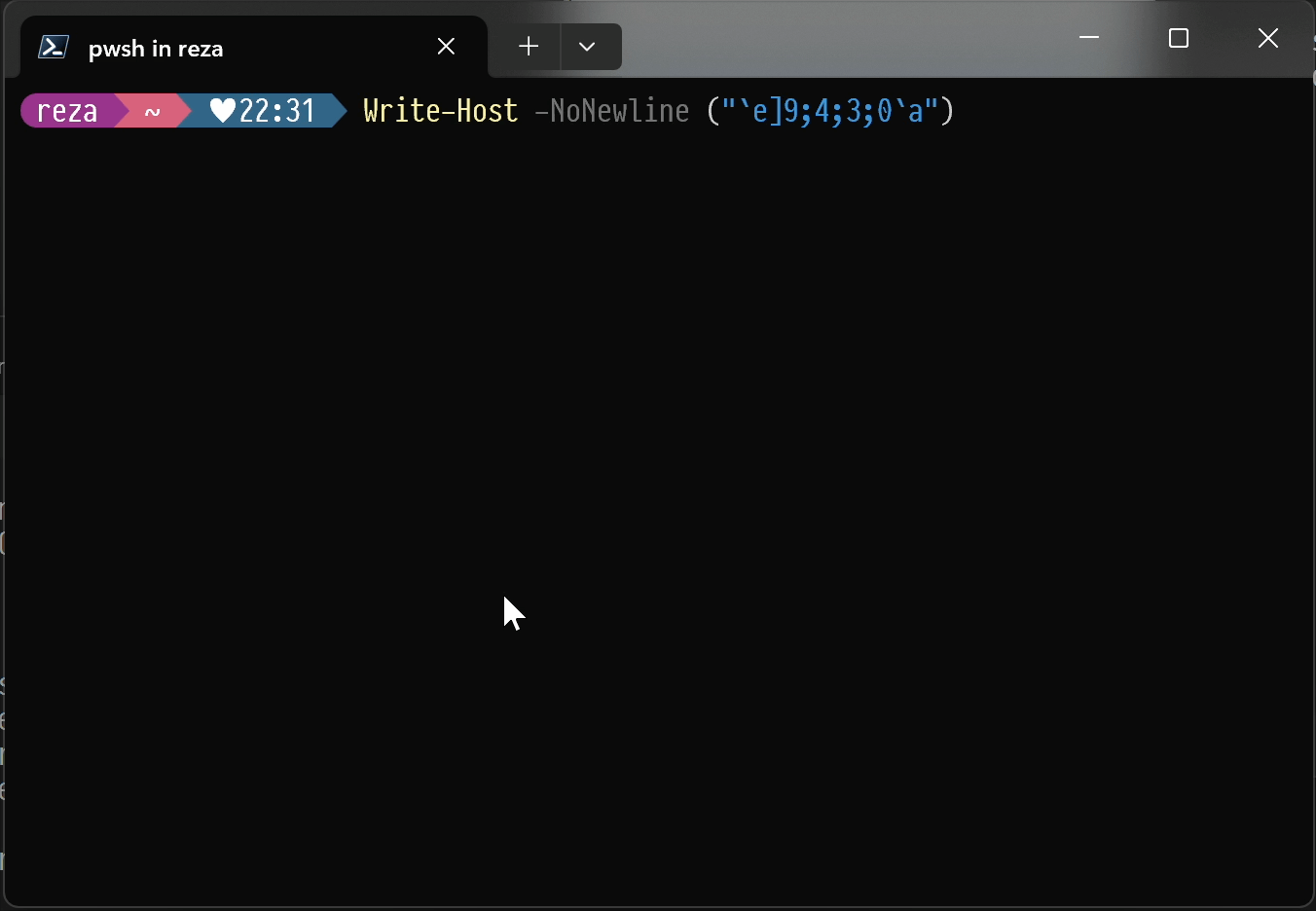 Write-Host -NoNewline ("`e]9;4;1;50`a")We are basically sending what's called OSC 9;4 sequence to the terminal. This sequence has the following syntax.