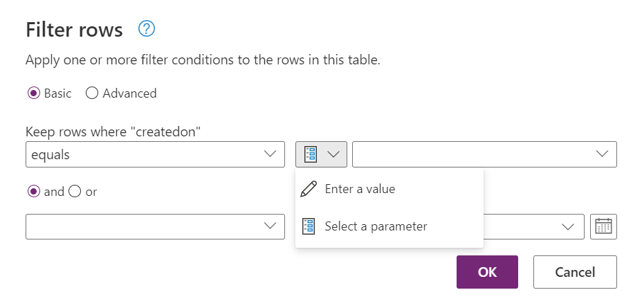 #"Filtered rows" = Table.SelectRows(#"Navigation 1", each [createdon] >= StartDate and [createdon] < EndDate)