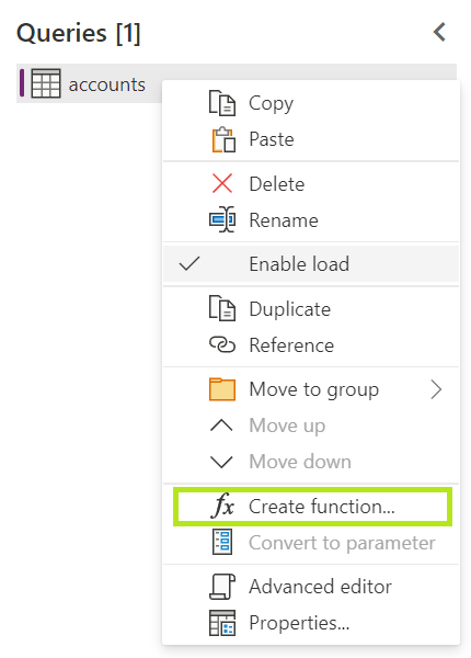// The rest of your transformations here.in #"The last step"The next step is to right-click on your query, and choose "Create function..." from the context menu. Just like the following screenshot.