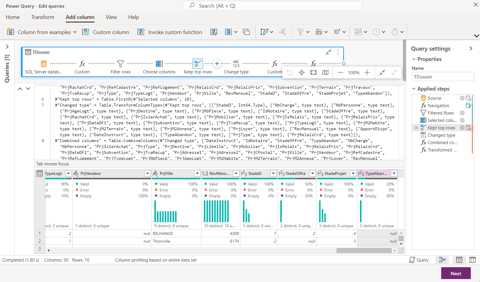 You should also try to pay attention to when you are mixing multiple functions in a step. You might notice that when you separate them, a part can fold to the data source. Sometimes it can be tricky to spot them, specially when the UI is mixing them behind the scene. Let's take an example to make it clear.